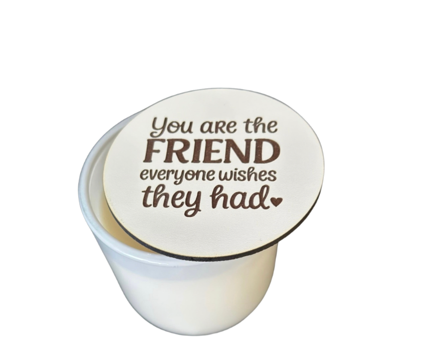 Each one is finished with a laser-engraved lid featuring the words “New Home, New Memories, New Beginnings.” It’s both a candle and a keepsake — a reminder of the joy and comfort that make a space truly special. With a white glass vessel it’s minimalist, versatile, and always gift-ready.